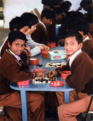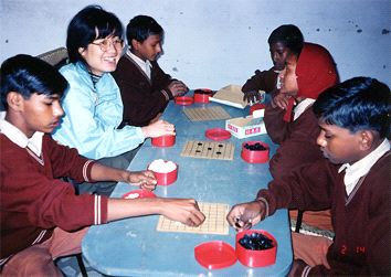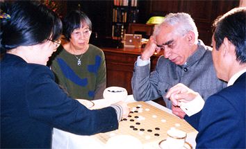 Last month I skipped a season, flying to India, where summer has already begun, to teach go. Two years had passed since my last visit. I stayed for three weeks and visited three cities: Mumbai, Delhi, and Aurobiira [phonetic transcription]. Ms. Takechi Harumi, who introduced me to the Aurobiira go group, flew over from Japan specially to accompany me on my tour, which was very reassuring. After all, with my knowing so little about India . . . In Japan, Ms. Takechi is just an ordinary woman, but as a go player she is known around the world. She's a superwoman who spends several months every year overseas, participating in go events and visiting friends. In particular, she goes to Russia every year and has been appointed an honorary counselor to the Russian Go Association. In Delhi I taught at two elementary schools that I first visited two years ago and also taught a group in the Japanese Association. I also had an opportunity to teach the fundamentals of go to the Indian Foreign Minister Mr. Singh. Mr. Singh had apparently been interested in go for some time and had been hoping for a chance to be taught by the Japanese Ambassador to India, Mr. Hirabayashi, but his duties as Foreign Minister had kept him too busy, so my lesson was his introduction to go. On the appointed day, four of us -- the Ambassador Mr. Hirabayashi, Harumi, a journalist, named Nakajima-san and myself -- visited the Ministry of Foreign Affairs, and, after passing through various inspection devices, were ushered into the Minister's office. On Mr. Singh's desk was a go set that he had got the Indian ambassador to China to buy for him. Speaking in a quiet, rather thick voice, like that of the actor Tamba Tetsuro, in English that, unusually for me with Indians, I could understand, Mr. Singh said: 'Oh, I'm so sorry I made the Japanese Ambassador, who's so busy, come too.' His office had a tasteful, burnished elegance; there was just our group and his secretary (quite a handsome gentleman). 'I'm greatly interested in go because I want to study strategy,' said Mr. Singh, who originally made his career in the army and is descended from maharajahs. His motive for learning go was different from that of the usual beginner. After a simple explanation of the rules, Mr. Singh immediately wanted to try a game. I expected the ambassador or Harumi to play him, but they said as one, 'Since we have a pro here --', so I couldn't resist. I was just wondering what the handicap would be when Mr. Singh took the bowl of white stones and said in his thick voice, 'Let's play!' To play a beginner who had just learnt the rules (after a fashion) on even! I was shocked: it would be a very difficult task not only to make the game look like go but also to make it enjoyable for my opponent. Perhaps you can understand my feelings. After I retrieved the white stones, we played a game in a friendly atmosphere, ending up with an explanation of how to rearrange the territories for counting. It was almost a miracle that we got through a whole game safely. Aurobiira is 300 km south of Madras; it's a pioneering community of people who lead a self-supporting life; nationality and race are irrelevant. It began 30 years ago by planting trees in this area, which was formerly desert, and now has a population of 1500. It's a large village, or organization, with the inhabitants 50-50 Indian and foreign. It is surrounded by various kinds of tropical trees -- it's like a paradise. Can you imagine what it's like? And there are go fans here! About 30 of them, all told, holding meetings every Sunday but also playing any time the go players are free. None of the local Indians are members -- instead, they are immigrants from overseas, such as Germans, Italians, Dutch, etc. Almost all of them learnt go here. They are now interested in teaching children in the village schools. I wonder what will happen. It's something to look forward to. (Monthly Go World, May 2000) |