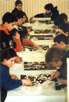 The Mr. Ing's Cup Childen's Go Tournament held in March every year is the only unified go tournament in Europe for children. It's always the event I most look forward to. This year it was held in the old capital of Romania, Sinaia. Participating were 125 children from 11 countries, ranging in strength from 30-kyu to 6-dan. The tournament was held in the midst of snowy scenery for three days, with everyone shrugging off the cold. I'm sure you've all heard of the great Taiwanese industrialist and go fanatic Mr. Ing Chang-Ki (known simply as Ing overseas). He's the sponsor of the Mr. Ing's Cup World Professional Go Championship held every four years. He's also invented his own go rules and made donations all over the world to popularize them and promote their use. He's caused great changes in overseas go. Mr. Ing died several years ago, but his support for go continues unchanged under the conditions of his will. This tournament in Sinaia is the European qualifying tournament for the World Youth Tournament sponsored by Mr. Ing, and this is the fifth year it's been held. I've been taking part since the second year. The venue changes every year, so the line-up of participating countries does likewise. For example, at last year's tournament in Cannes, more than half of the participants were French children, and there were also children from Spain and England etc., but this year there were only eight participants from Western Europe. The host country Romania provided 80 competitors, and there were also large numbers from Eastern European countries such as Russia, the Ukraine, etc. For the children, this tournament is a chance to make new friends through go, as well as a valuable opportunity to polish their skills through serious competition. However, Europe is so vast that travel expenses are nothing to sneeze at, so there are many children who are unable to take part for financial reasons. That's the reason for the biggest problem of this tournament, that the number of competitors is not going up much every year, even though more and more children are learning go. There are two sections in the tournament: under 18 and under 12, with six games being played in each. The top two in the under 12 and the top four in the under 18 are invited to participate in the world championship, scheduled to be held in Prague in July this year. With such an enticing prize, really strong children will travel a long way to take part. However, their fathers and elder brothers really suffer from the tension -- every day they seem to get more and more worn out, whereas the children themselves enjoy renewing old friendships and making new ones. They become more and more powerful every day -- the vitality of youth! Use of the Ing rules is compulsory in the tournament. These are very eccentric rules which would be very difficult for me to explain in prose, but at least I'll try to give an outline. First of all, the komi is eight points. Captured stones are returned to the opponent. After the end of the game, the remaining stones in your go bowl are used to fill in your territory. The side that ends up with most territory left wins. Dame points are also worth one point each, and the game ends when each side passes in succession. For these rules, you have to have exactly 180 stones to start out with, so Mr. Ing developed special go bowls and has donated them around the world. In short, in return for financial assistance, tournament sponsorship, and the donation of go equipment, you have to use the Ing rules. In practice, you have to have the exact number of go stones for each game, so managing this is difficult; in particular, in this respect the rules are not suited to children. On top of this, the specially made plastic go bowls are awkward items with zero aesthetic appeal, and, what's more, they break easily. All one can say, from a Japanese point of view, is that they're better than nothing. However, you're lucky if you actually have go bowls. Half the games at this tournament didn't have bowls, so the stones were in plastic bags. The children would count out the right number of stones on the board, then pile them beside the board where it was easy to push a stone on to the board when playing a move. Go etiquette was out of the question. You can't complain overseas where there's little go equipment and financial assistance. Surely the most important thing is the simple fact that children's tournaments like this even exist and that as many children as possible get to play in them. (To be continued) (June, Monthly Go World) |